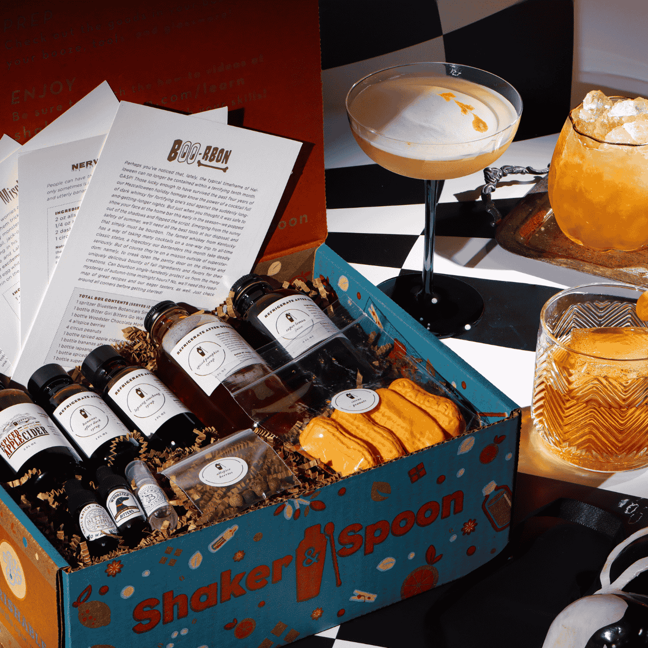 To make this box, you’ll need a few basic tools not included. While it’s nice to have proper bar gear, it’s far from required. A tablespoon can sub for a jigger, two cups work as a shaker, any spoon stirs just fine, and you’re good to go. Shake it up your way!