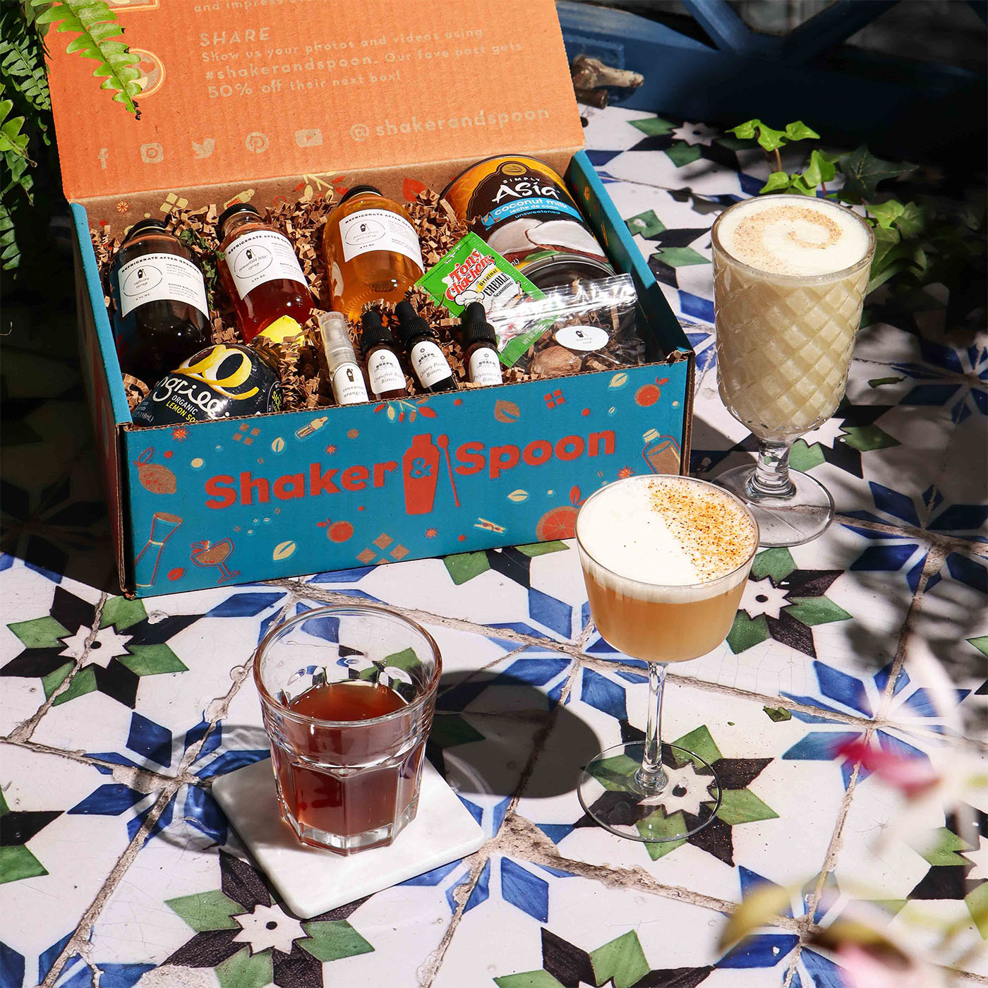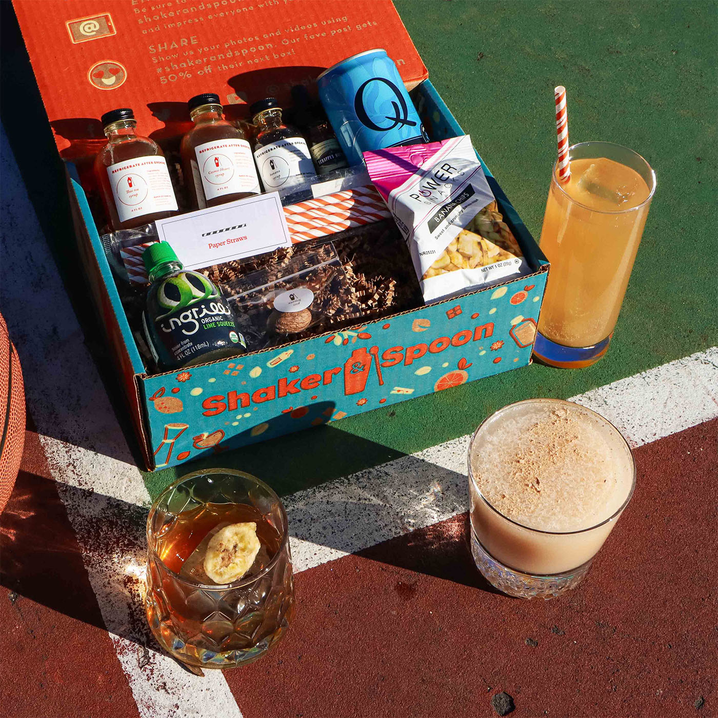 To make this box, you’ll need a few basic tools not included. While it’s nice to have proper bar gear, it’s far from required. A tablespoon can sub for a jigger, two cups work as a shaker, any spoon stirs just fine, and you’re good to go. Shake it up your way!