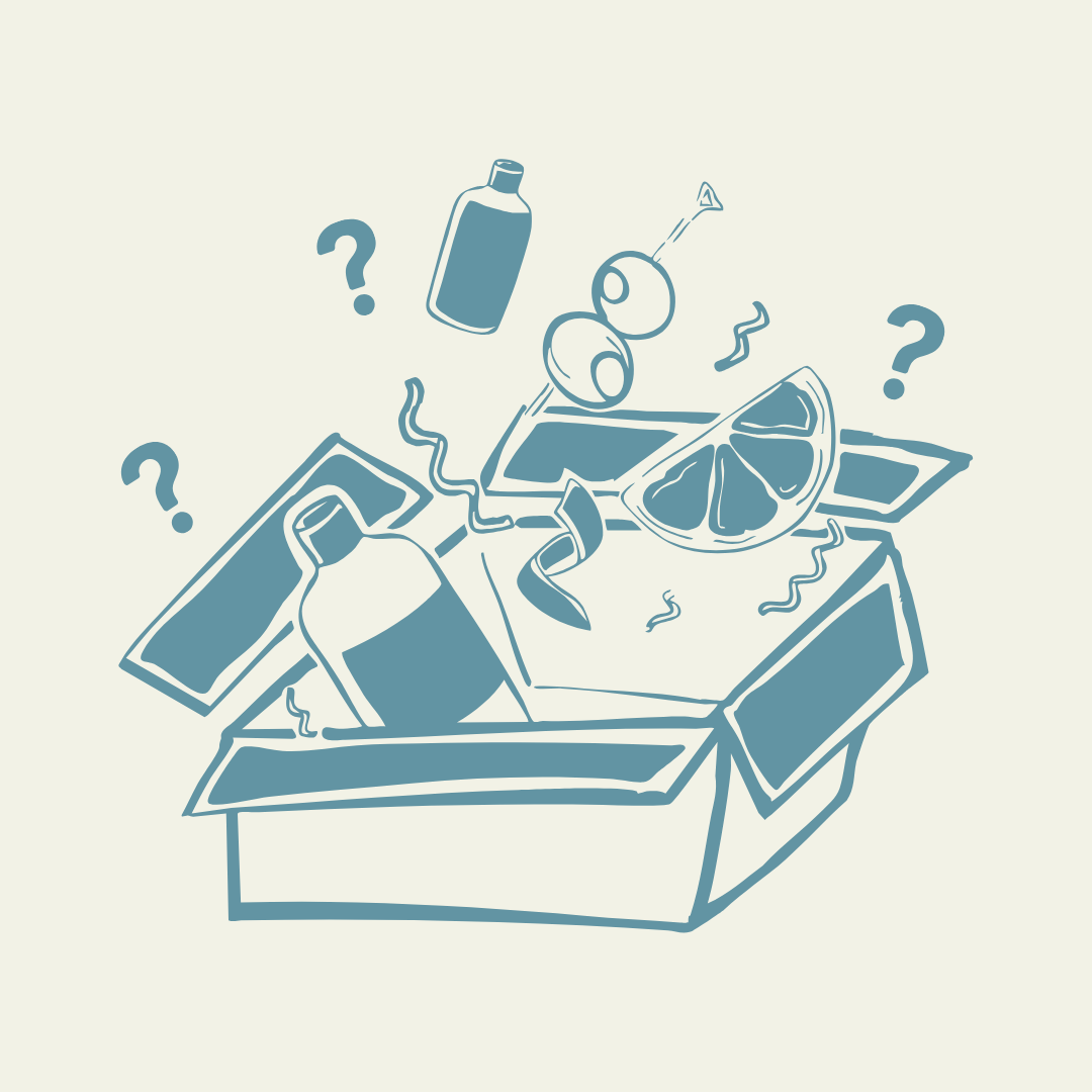 To make this box, you’ll need a few basic tools not included. While it’s nice to have proper bar gear, it’s far from required. A tablespoon can sub for a jigger, two cups work as a shaker, any spoon stirs just fine, and you’re good to go. Shake it up your way!